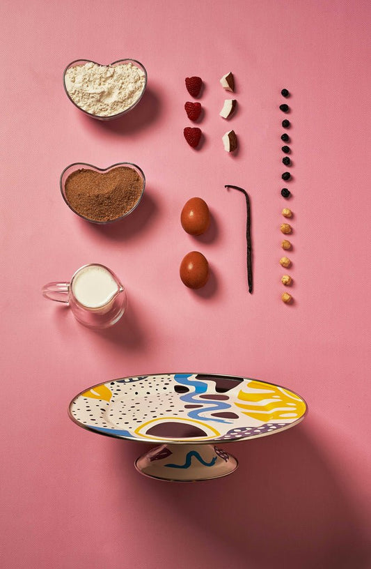 Flashback Footed Cake Serving Plate - Enamel Vintage Look Washable Cake Serving Plate / Kapka