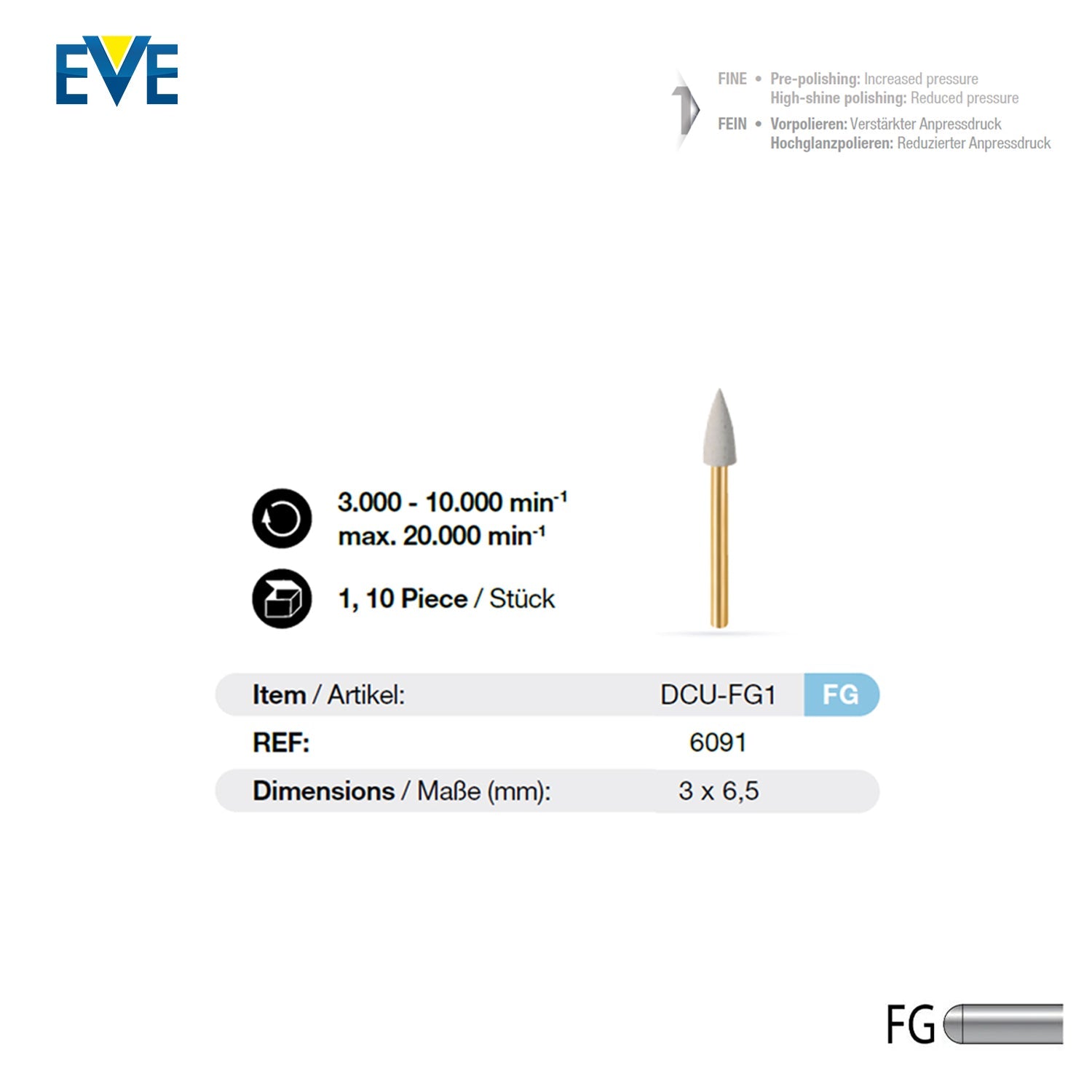 Manufactured by EVE Ernst Vetter GmbH, DIACOMP® PLUS FG - DCP-FG1f is a high-quality polishing tool designed to deliver superior shine on 3D printing hybrid materials, hybrid ceramics, and composite surfaces.