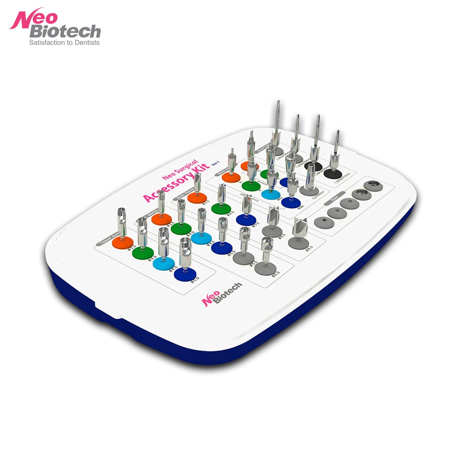 This product is the Neo Surgical Accessory Kit, consisting of dental implant surgical instruments.