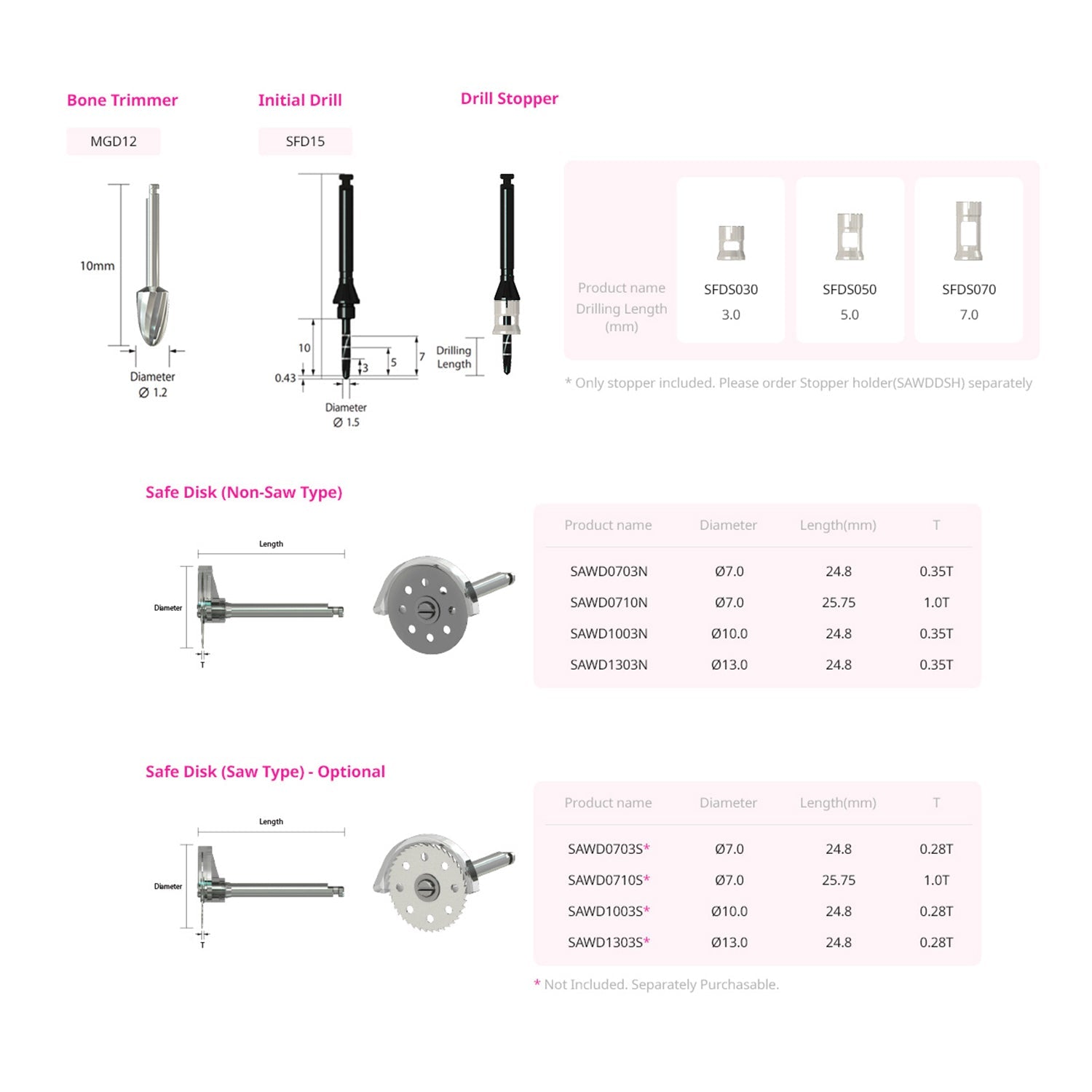 - SAWD1003N: Ø10.0 / 24.8 / 0.35T