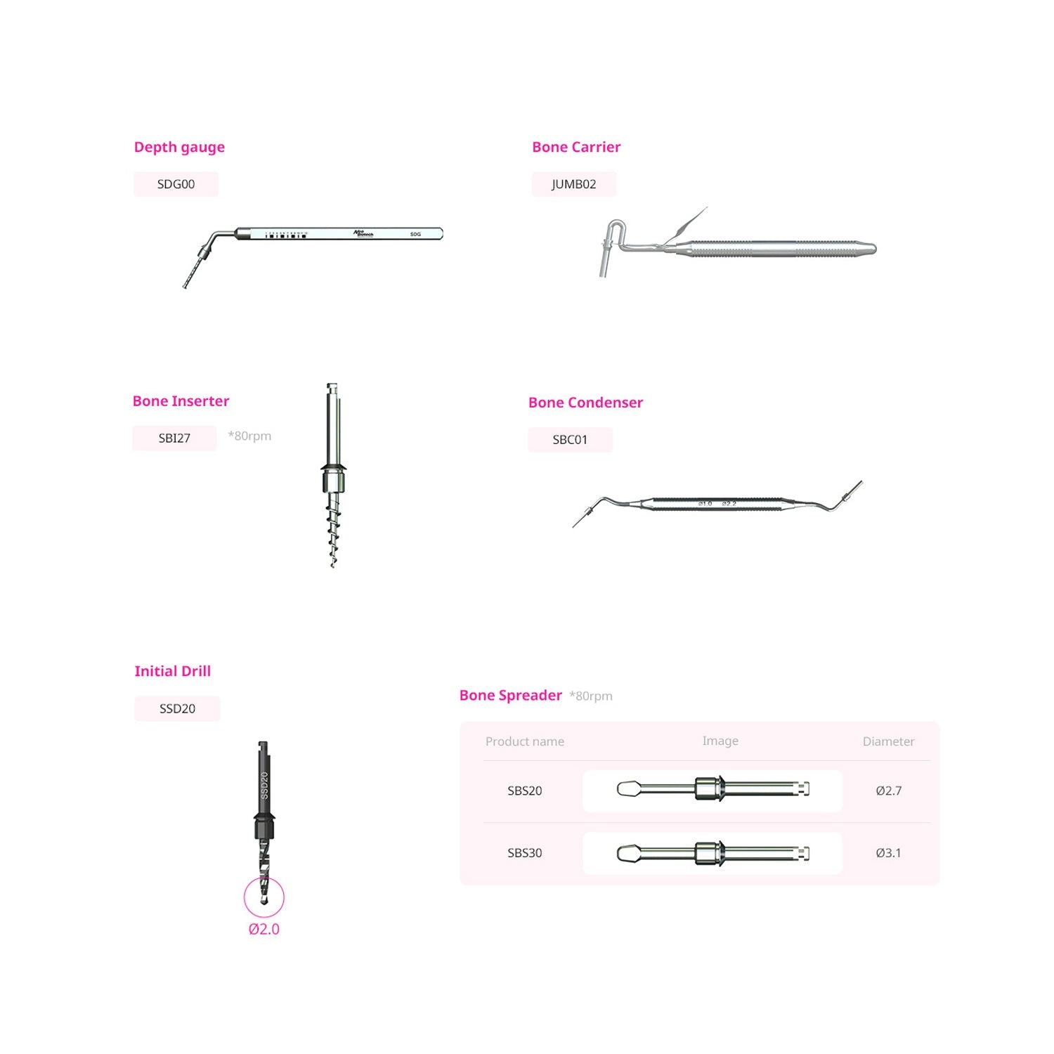 - Enables high-speed drilling within the range of 800~1,200 RPM, without damaging the sinus membrane.