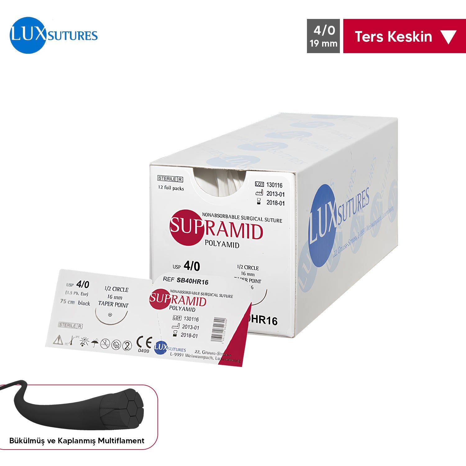 Supramid Coated Multifilament Suture - Reverse Sharp 4/0 - 19mm